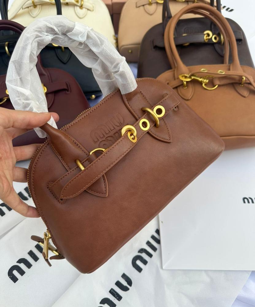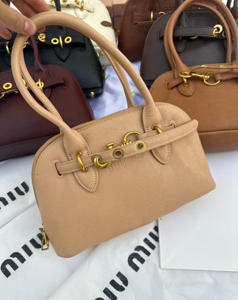 - تفاصيل معدنية راقية وشعار ميو ميو المميز.